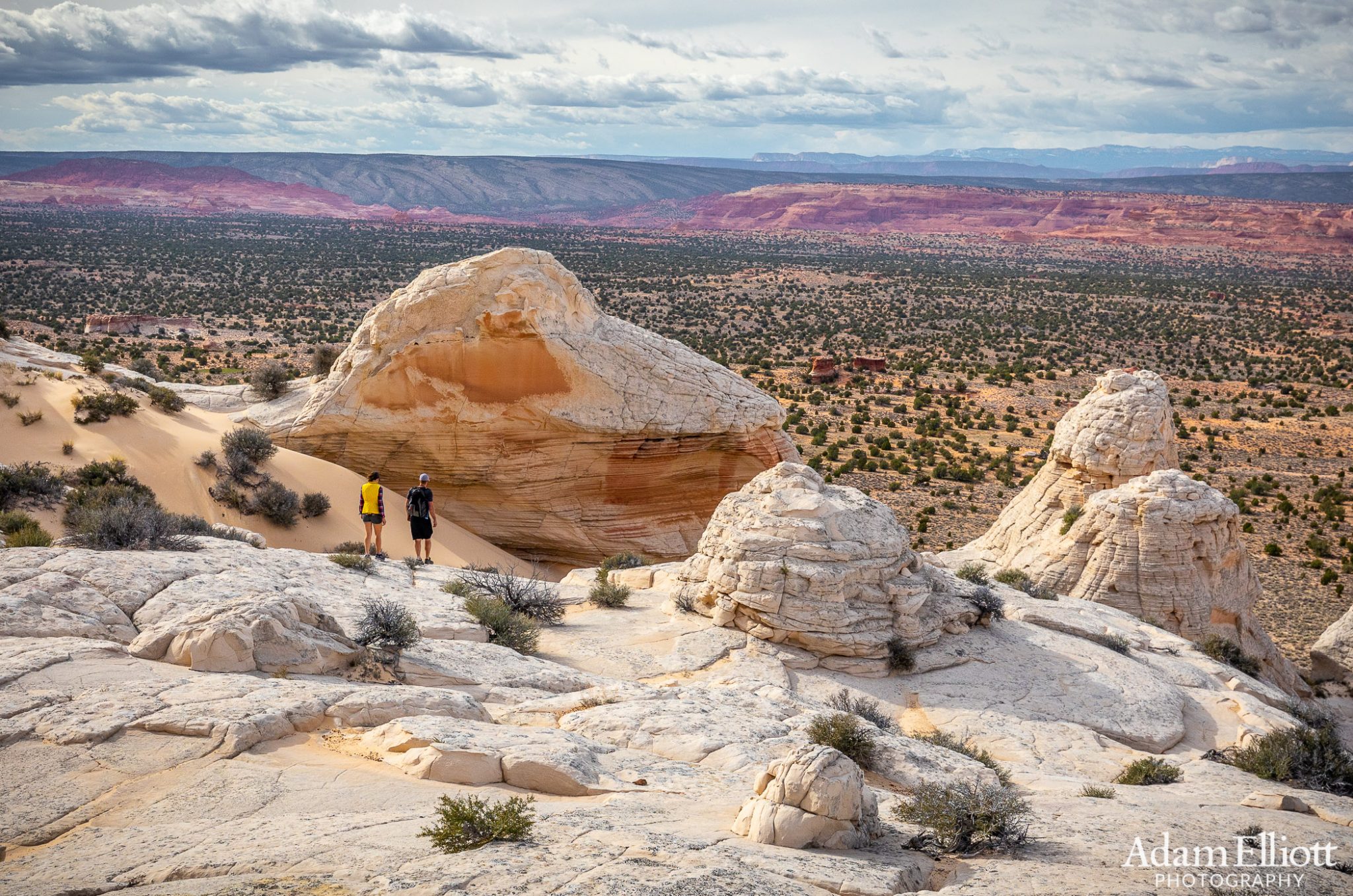 White Pockets, in the Vermilion Cliffs National Monument, has in recent years become one of the most popular places in Utah for guided photo tours. For whatever reason I tend to avoid those types of areas but White Pockets is famous enough I knew I’d have to go sometime. I’d heard the road was terrible but I had no problem getting there (it is many miles of deep sand and high clearance 4WD is a necessity) but I was shocked at the almost two dozen cars and vans in the parking lot when I got there in the early afternoon. The whole place was a complete zoo with multiple photo groups and multiple drones flying low overhead.