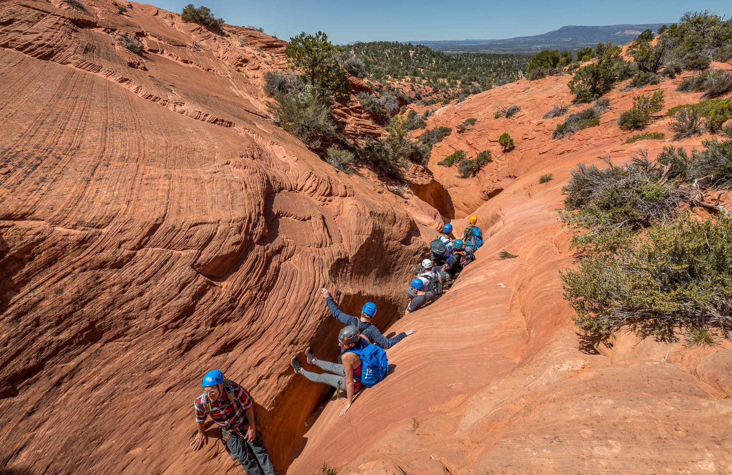 I wasn’t there to take pictures at all, but I did bring my camera because after the two day event was over I had planned on doing some hiking in Zion’s East Canyons. So after people got to know me it wasn’t long until I had the unofficial job of documenting a canyoneering trip that we did near Mt. Carmel Junction. The trip was guided by the lodge. We were driven for 30 minutes by van out to what looked like the middle of nowhere. I generally consider that a good sign because it means no crowds.