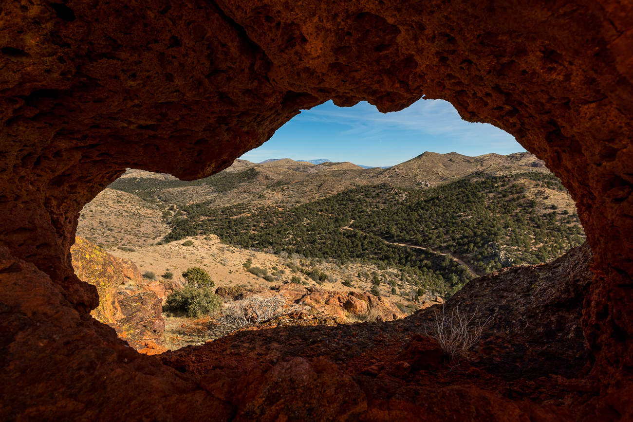 The first stop was to check out “Red Arch” at the bottom of Square Top Mountain. There is a sandstone butte outcropping long the south side of the mountain and on the west end of it is a break in the cliffs with an arch about halfway up. We took an old side road to shave off a few miles but it was so rough I don’t think it saved any time. It’s also washed out at the point where it connects to the road leading to the large Goldstrike strip mine.
