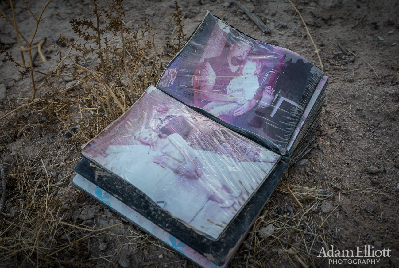 In a depressed hollow was an abandoned camper trailer being used by squirrels as a fantastic mansion. Outside in the weeds I found an old photo album with sun faded family pictures.