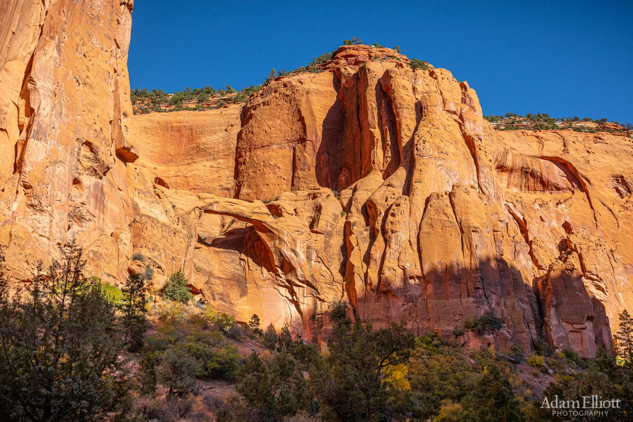 Late enough in the day the canyon walls were beginning to glow, this nice peaceful area had a strong breeze in the trees. There was a trickle of a stream at my feet, feeding all this vegetation.