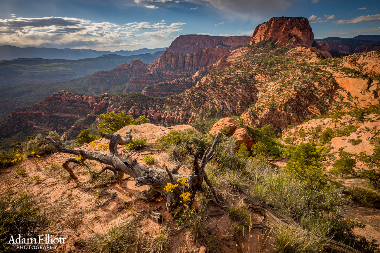 An astounding panoramic view of Burnt Mountain the the Kolob Fingers behind it. You don’t get views much better than this and I have never seen this one in Zion.