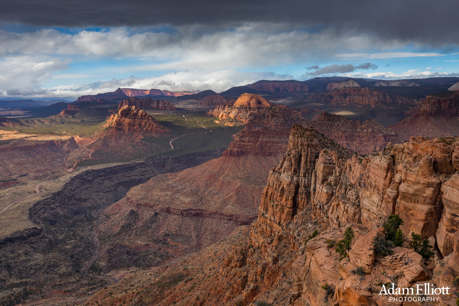 Finally, the view off the western cliffs of Cougar Mountain! The prize for a less than optimal peak climb is this unique view looking straight up Cave Valley on the Kolob Terrace. You can see what’s left of a dust storm in Lee Valley.