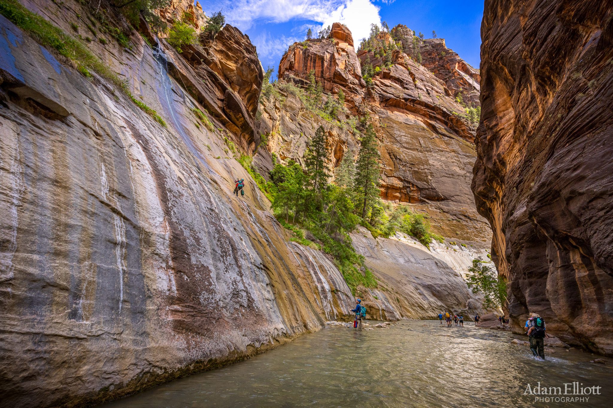 The final rappel is down this waterfall into the Virgin River. I was surprised how quickly everyone noticed us.