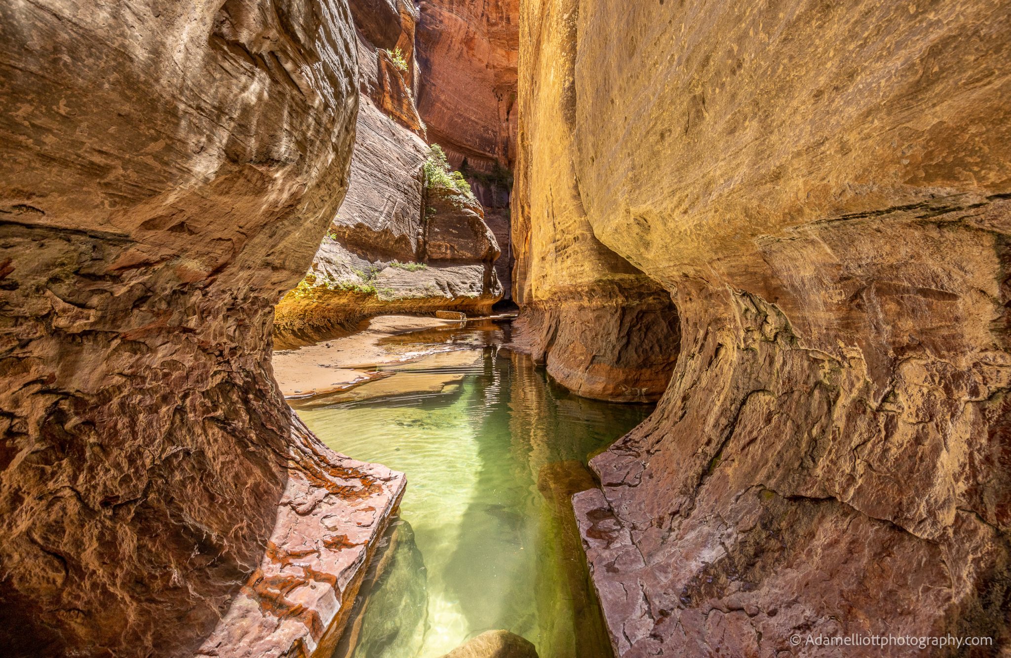 The first time I hiked The Subway was in 1996, from the bottom up to the last rappel. I experienced the same awe as most people do, possibly more so because back then it wasn’t well known or constantly advertised. I tried to climb up higher and I was almost able to do so, but it was obvious I would not be able to get safely down. The next time I went up, a few years later, I borrowed a medium format film camera and lugged it up there to do some photos for a school project. But in all the years since, I had never done the technical part of the canyon upstream from where the popular hike ends. This photo blog is about that portion of the canyon, or to be even more specific, the middle portion, between Russel Gulch and the hike portion of “The Subway”.